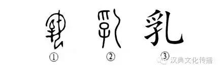 “室中更無(wú)人,惟有乳下孫?!边@個(gè)“乳”字本為象形字。甲骨文①就像一個(gè)母親面朝左而跪坐著(zhù),兩手環(huán)抱一個(gè)娃娃,胸前的一點(diǎn)為乳房,表示給娃娃喂奶。②是小篆的形體,其右邊的曲筆是“女”形之訛變。③是楷書(shū)的寫(xiě)法。