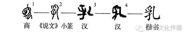 ”略微不同,以表示子面向母體乳之意?!墩f(shuō)文》小篆“乳”字是甲骨文的訛變,“