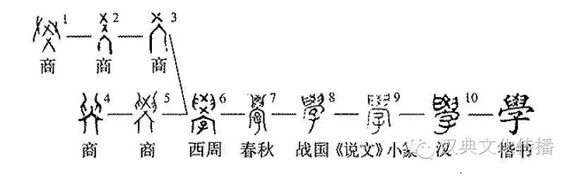 的源頭與聲首,甲骨文有以爻為學(xué)者(《鐵云藏龜之余》7.2,另一種以