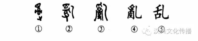 “剪不斷,理還亂”這個(gè)“亂”字本為會(huì )意字。①是金文的形體,其上部為“爪(手)”,下部為“又(手)”,中間是在?(hu4,絞繩器)上的亂絲,這就表示用雙手理亂絲。②是戰國詛楚文的形體,右邊增加了“乙”,其義未變。③是小篆的形體。④為楷書(shū)繁體字。⑤為簡(jiǎn)化字。
