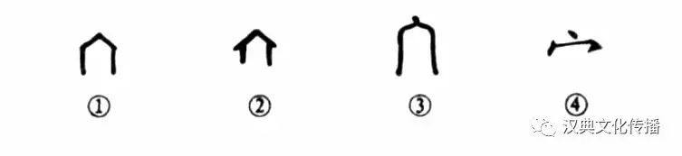 這是個(gè)“宀”(mián)字。在古代就是代表房子的意思。甲骨文①和金文②都有房子的樣子。小篆③則變成圓頂房子了,真像遼闊草原上的“蒙古包”??瑫?shū)④就不太像房子了。