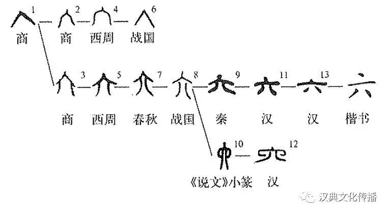 ”,隸變后則變?yōu)辄c(diǎn)和橫。本義當為草廬,是“廬”的初文?!傲惫乓粝嘟?,所以假借為數詞“六”。依陰陽(yáng)理論,六是陰數,即《說(shuō)文》所謂“六,易之數,陰變于六”,所以又指《易》中的陰爻。《易·坤》:“用六永貞,以大終也。”(王穎)