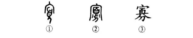 這是“寡不敵眾”的“寡”字,是個(gè)會(huì )意字。你看了甲骨文①的形體,也許就會(huì )了解個(gè)大概的意思:外面是一座房子,里面只有一個(gè)人(頭上還長(cháng)著(zhù)長(cháng)頭發(fā),有身子和手臂),這當然就有“少”的意思了。小篆②則把房?jì)戎叭恕弊兊酶鼜碗s了,變成了上“頁(yè)”下“分”。③是楷書(shū)的形體,是由小篆變來(lái)的,從組成的各個(gè)部分來(lái)說(shuō),基本上沒(méi)有變化。