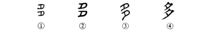 “梅開(kāi)五福。竹兆三多?!边@個(gè)“多”字是個(gè)會(huì )意字。在甲骨文①中,很像是重疊的兩個(gè)“夕”字。許慎說(shuō):“重也,從重夕,夕者相繹也,故為多。”其大意是:晝夜更替永遠不停,所以這就是“多”的意思。金文②和小篆③也都是兩個(gè)“夕”字。④是楷書(shū)的寫(xiě)法,它與前幾種形體均相似。
