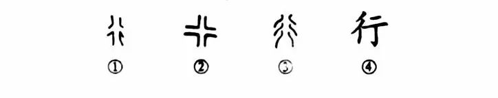 “走林而射鳥(niǎo),行畔而觀(guān)魚(yú)。”這個(gè)“行”字是個(gè)象形字。甲骨文①中間是一條大路,左右兩側又分出了兩條小路。金文②的形體是東西南北都能通行的十字路口。③是小篆的形體,變得根本看不出通行道口的樣子了。④是楷書(shū)的寫(xiě)法。
