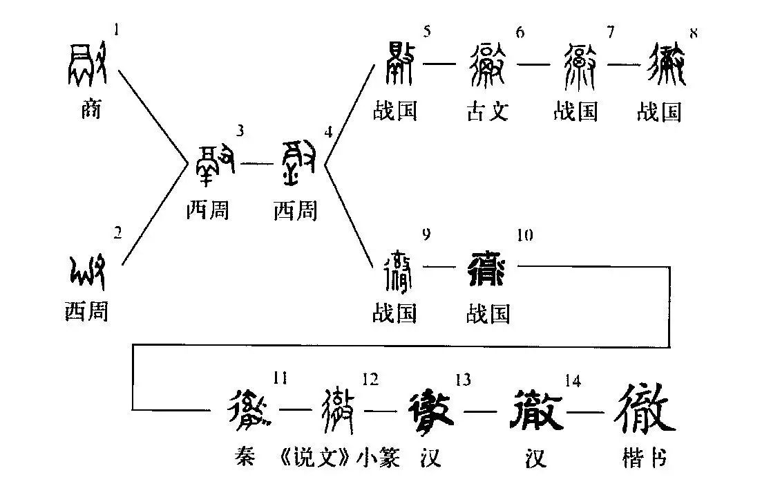 ,訛變甚者則作育之異)、觚育)。有的增加了形旁彳(chì,表道路),有的加彳又加人(亦似幾),或易又(攴)旁為“行”?!墩f(shuō)文》厘定作從彳從攴從育,是理?yè)貥?,與商周構意有別。隸變后楷書(shū)作徹,是小篆的筆勢變化,簡(jiǎn)化字作徹。個(gè)別的或從行從育,或從彳從育從殳,均未取得主流地位。本義當為撤去、撤除(以手撤離鬲?;蛘f(shuō)為布列,相反相成)。《左傳·宣公十二年》:“諸侯相見(jiàn),軍衛不徹,警也。”云夢(mèng)秦簡(jiǎn)《秦律十八種·田律》:“禾、芻稾徹木、薦。”(谷禾、芻稾撤除墊木與草藉)此義后用“撤”字。引申指穿、透。《說(shuō)文》:“徹,通也。”《左傳·成公十六年》:“潘尪之黨與養由基蹲甲而射之,徹七札焉。”又引申指通達(《說(shuō)文》訓“通”)。何尊:“?(徹)令茍(敬)亯(享)哉。”(通達命令,敬事奉上)亦指貫通,此義秦簡(jiǎn)假“