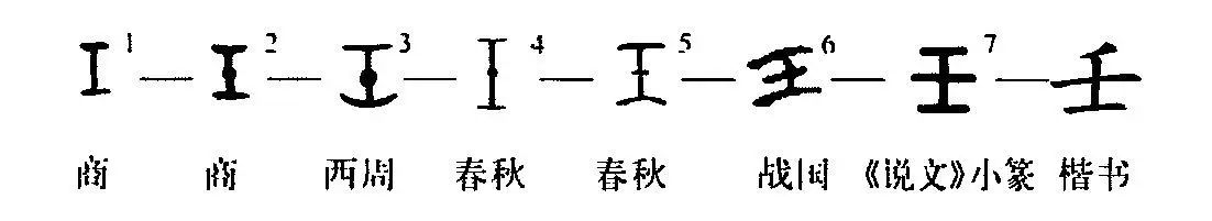 這個(gè)“壬”字本為象形字。甲骨文①就像纏線(xiàn)用的木制工具。金文②的中間有一個(gè)圓點(diǎn),有人認為這是表示已繞上了線(xiàn)團;李學(xué)勤先生說(shuō):“古文字直筆常加點(diǎn)?!雹凼切∽男误w,中間的一點(diǎn)變成了一橫。④為楷書(shū)的寫(xiě)法。