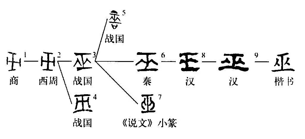 這個(gè)“巫”字本為象形字。甲骨文①和金文②中的“