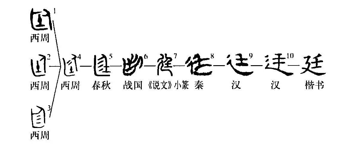 后世變作廴旁(參“延”字條)。也有學(xué)者認為小篆廷字所從的