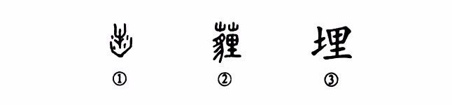 這是“落紅埋幽徑”的“埋”字,是個(gè)會(huì )意字。甲骨文①的形體多形象??!其下部的曲線(xiàn)表示挖了一個(gè)土坑,中間是“?!?/span>(正面看牛頭之形);在“?!钡膬蓚扔兴膫€(gè)點(diǎn)兒,這就表示填的土,其意就是把牛埋于地下。小篆②在形體上發(fā)生了很大的變化,其上部是草,其下是“貍”(貍),后者是一種動(dòng)物,藏在草中就是“埋藏”之義。到了楷書(shū)③則又變成了一個(gè)筆畫(huà)簡(jiǎn)單的后起會(huì )意字,其左是“土”其右是“里”,把東西藏在土里,當然就是“埋”的意思了。