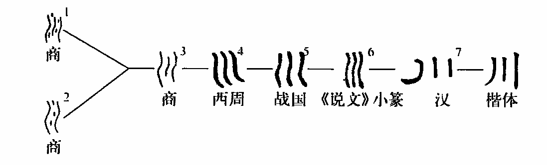 象形字。像兩岸中間有流水?!按ā弊旨坠俏膬蛇厼榘?,中間為流水;金文把中間水形變?yōu)?img src="/d/file/p/2017/12-01/1512081900_905.png" height="40" style="border-width: 0px;border-style: initial;border-color: initial;font-variant-numeric: inherit;font-stretch: inherit;line-height: inherit;" />,小篆從之。《說(shuō)文》:“川,貫穿通流水也?!队輹?shū)》曰:‘濬巛距川’,言深巛之水會(huì )為川也。”本義為河流。《書(shū)·禹貢》:“奠高山大川。”孔傳:“大川,四瀆。”孔穎達疏:“川之大者,莫大于瀆。四瀆謂江、河、淮、濟也。”“川”字在甲骨文中業(yè)已出現,但其義則不詳。似與“水”之用法同。《戰后寧滬新獲甲骨集》 1.482:“丙子貞,不川? 其川? ”《殷墟書(shū)契前編》2.4.3:“丙戌卜,貞……不水?”都指漲水。從河流義引申為河流的源頭,又轉指山間或高原間平坦的陸地,因其地勢低,在山原間,像河水在堤岸間一樣。《新五代史·周德威傳》:“平川廣野,騎兵之所長(cháng)也。”(馮華)