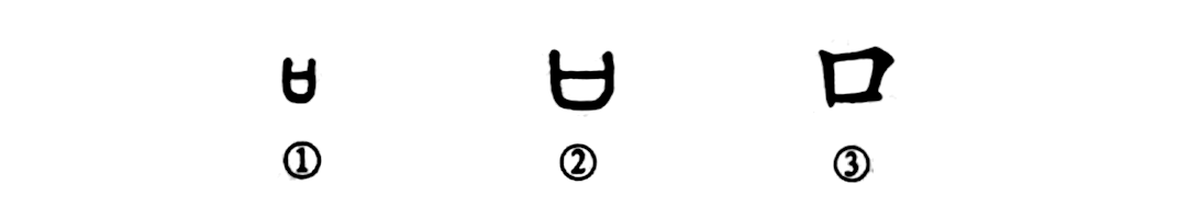 這個(gè)“口”字是個(gè)象形字。甲骨文①和小篆②的形體都像人的嘴。③是楷書(shū)寫(xiě)法。