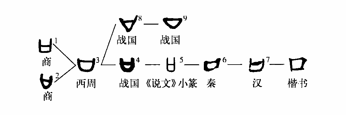 象形字。字像人口之形。本義即指口。《乙》 1463 :“貞:疾口?” 《詩(shī)·豳風(fēng)·鴟鸮》:“予手拮據……予口卒瘏”(瘏,病也),也用其本義。金文中“口”字用作族氏文字。古文字中“口”一般寫(xiě)作兩筆,至漢時(shí)可能出現了作三筆寫(xiě)的,但筆順與現在不同,其順序可能是