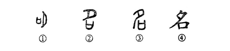 “名下無(wú)虛士?!边@個(gè)“名”字,本為會(huì )意字。甲骨文①的左邊是“口”,右邊是“夕”。甲骨文中的“夕”與“月”本為一個(gè)字。唐蘭先生認為,這就表明在月下說(shuō)話(huà)的意思。也可以說(shuō)是在月下呼喚名字。②是金文的形體,變作月下有口,其義未變。③是小篆的形體。④是楷書(shū)的寫(xiě)法。