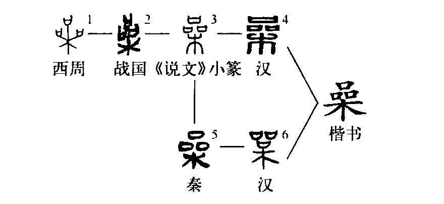 這是“群鴉亂噪”的“噪”字,原為會(huì )意字。金文①中有一棵樹(shù),樹(shù)上有三個(gè)“口”,表示群鳥(niǎo)在枝頭鳴叫。②是小篆的寫(xiě)法。③為楷書(shū)形體,左邊又增加一個(gè)“口”,變成了會(huì )意兼形聲的字了。