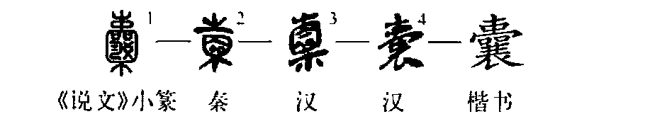 ”;楷書(shū)則僅省去了“亠”?!澳摇?,本義是口袋。《史記·平原君列傳》:“平原君曰:‘夫賢士之處世也,譬若錐之處囊中,其末立見(jiàn)。’”漢王充《論衡·無(wú)形》:“形之血氣也,猶囊之貯粟米也。”引申指用口袋盛物。漢桓譚《新論·求輔》:“雖積和璧,累夏璜,囊隋侯,篋夜光,未足以喻也。”明馬中錫《中山狼傳》:“策蹇驢,囊圖書(shū)。”(翼小軍)