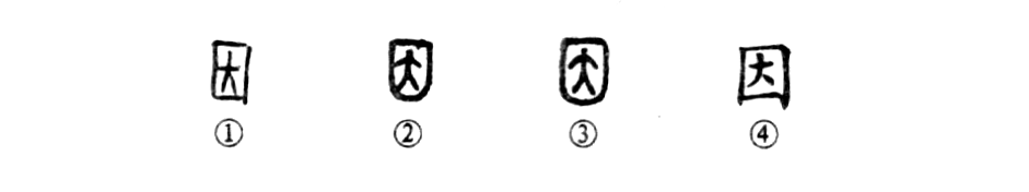 “回風(fēng)吹四壁.寒鳥(niǎo)相因依?!边@個(gè)“因”字本為會(huì )意字。①是甲骨文的形體,“囗”為“席”的四方形,里面的“大”為人形,象人臥于席上。②是金文的形體,與甲骨文相似。③是小篆的形體。④為楷書(shū)的形體。從形體上看,“因”字的古、今文寫(xiě)法是一脈相承的。