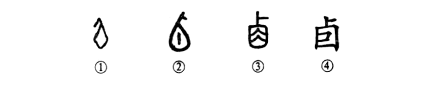 這個(gè)“卣”字讀作yǒu,本為象形字。甲骨文①就像一個(gè)酒器之形。這種酒器一般是用青銅制成,橢圓形,大腹小口,上有蓋和提梁。②是金文的形體。中間的一點(diǎn),表示裝有酒漿之意。③是小篆的形體,似乎酒在器中晃動(dòng)。④是楷書(shū)的寫(xiě)法。