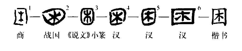 《說(shuō)文》:“困,故廬也。”恐不妥?!袄А弊直玖x應為“門(mén)橛”,因門(mén)橛有限制的作用,因此引申為“圍困”,如諸葛亮《后出師表》:“困于南陽(yáng)。”也就是被圍困在南陽(yáng)的意思。從“圍困”義又能引申為“窘迫”、“困窘”,如《史記?屈原傳》:“齊竟怒不救楚,楚大困。”這是說(shuō):齊國竟然生氣而不去救楚國,楚國非常困窘。由此又可以引申為“貧乏”,如《史記?宋世家》:“歲饑民困。”又能引申為“生活困難”,如《尚書(shū)大傳?略說(shuō)》:“行而無(wú)資謂之乏,居而無(wú)食謂之困。”由“生活困難”又可引申為“困倦”,如白居易《賣(mài)炭翁》:“牛困人饑日已高,市南門(mén)外泥中歇。”