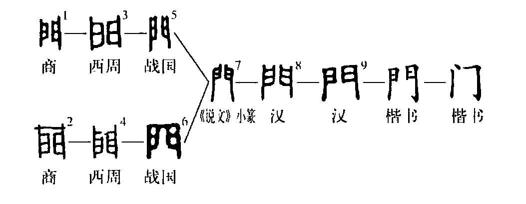 “門(mén)”字自古至今皆用其“門(mén)戶(hù)”的本義,如《墨子?號令》:“門(mén)常閉。”后來(lái)引申為進(jìn)出口也稱(chēng)門(mén),如《徐霞客游記?楚游日記》:“洞門(mén)甚隘。”就是說(shuō)“洞門(mén)很狹窄”的意思。一門(mén)之內為一家,所以“門(mén)”也能當“家”或“家族”講,如《三國志?蜀書(shū)?先主傳》:“汝勿妄言,滅吾門(mén)也。”大意是:你不要胡說(shuō),當心滅掉我們的家族。從“家族”之義,又能引申為“門(mén)類(lèi)”的意思,如《舊唐書(shū)?杜佑傳》:“書(shū)凡九門(mén),計二百卷。”這就是說(shuō):這部書(shū)分為九個(gè)門(mén)類(lèi),一共有二百卷。