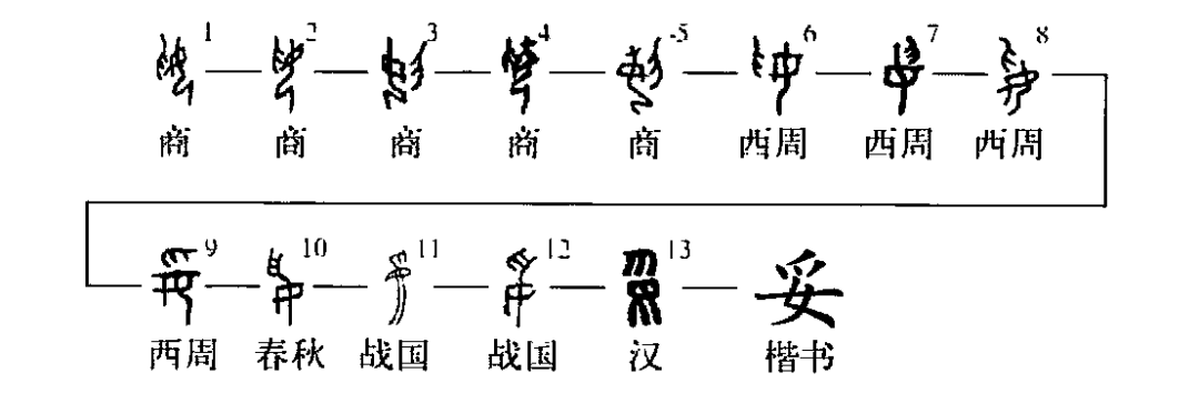 這個(gè)“妥”字是個(gè)會(huì )意字。甲骨文①的左上部是一只手(爪),右邊跪著(zhù)一個(gè)婦女,是制服女奴之形。金文②的形體也基本上同于甲骨文,不過(guò)其右邊的婦女有點(diǎn)半站的樣子。小篆③則手在婦女的頭上,這不僅為了結構合理,而且也更能顯示制服之意。④是楷書(shū)的寫(xiě)法,是由小篆直接演變而來(lái)。