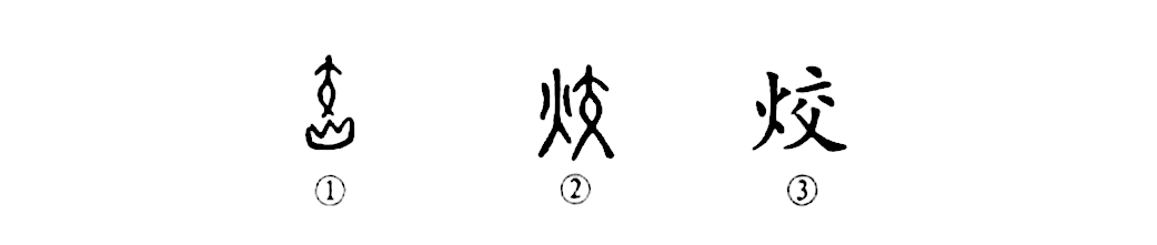 這個(gè)“烄”字讀作jiǎo,本為會(huì )意兼形聲的字。甲骨文①的上部是“人”,下部是“火”,以火焚人為“烄”。②是小篆的形體,“火”移于“交”之左,其義未變。③是楷書(shū)的形體。