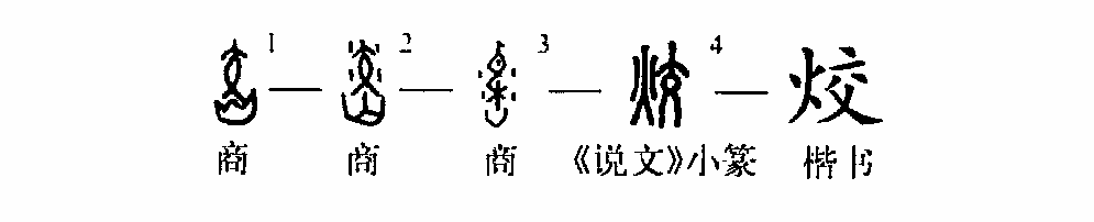 《說(shuō)文》:“烄,交木然(燃)也。從火,交聲。”許說(shuō)不妥。首先,許慎把這個(gè)字看成是單純的形聲字,實(shí)際上是會(huì )意兼形聲字。再者,“交”字的本義并不是“交木然”,而是在火中焚人。在上古每逢天大旱,便把女奴放在火上燒死,以乞降雨,這在甲骨文中多有記載。