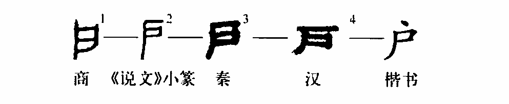 “戶(hù)”的本義是單扇門(mén),正如《說(shuō)文解字?戶(hù)部》所說(shuō):“半門(mén)曰戶(hù)。”后來(lái)又引申為出入口的通稱(chēng),如門(mén)戶(hù)、窗戶(hù)等。后來(lái)又可引申為“住戶(hù)”、“一家一戶(hù)”。