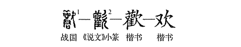 請注意:“歡”字在古籍中還常常寫(xiě)作懽、驩、讙,這都是“歡”的異體字,現在均已廢除。