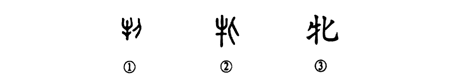 這個(gè)“牝”(pìn聘)字是一個(gè)會(huì )意字。甲骨文①的左邊是個(gè)“?!?,右邊的“匕”是個(gè)雌性符號。從甲骨文的其它文字看,凡是表示母羊、母豬、母馬、母鹿的字都有這個(gè)雌性符號。②是小篆的形體,其左仍然是“?!钡瞧溆业拇菩苑栕兊门c甲骨文的雌性符號相反,像個(gè)反“刀”形。③是楷書(shū)的形體,是直接由小篆變來(lái)的。