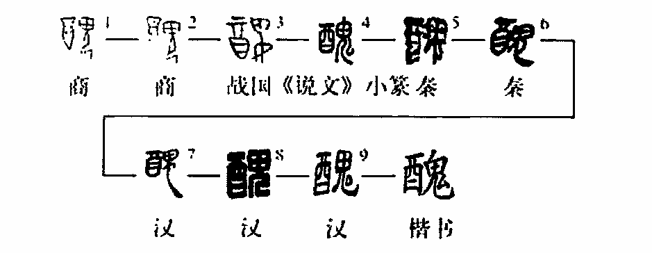 形聲字。《說(shuō)文》:“醜,可惡也。從鬼,酉聲。”段玉裁注:“《鄭風(fēng)》:‘無(wú)我