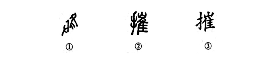 這是“黑云壓城城欲摧”的“摧”字,本為會(huì )意兼形聲的字。①是甲骨文的形體,左邊從“攴”,右邊為“佳(鳥(niǎo))”,即撲打鳥(niǎo),有摧毀之意。②是小篆的形體,“隹”上又增加了“山”,摧毀之意更為明顯。③是楷書(shū)的寫(xiě)法。