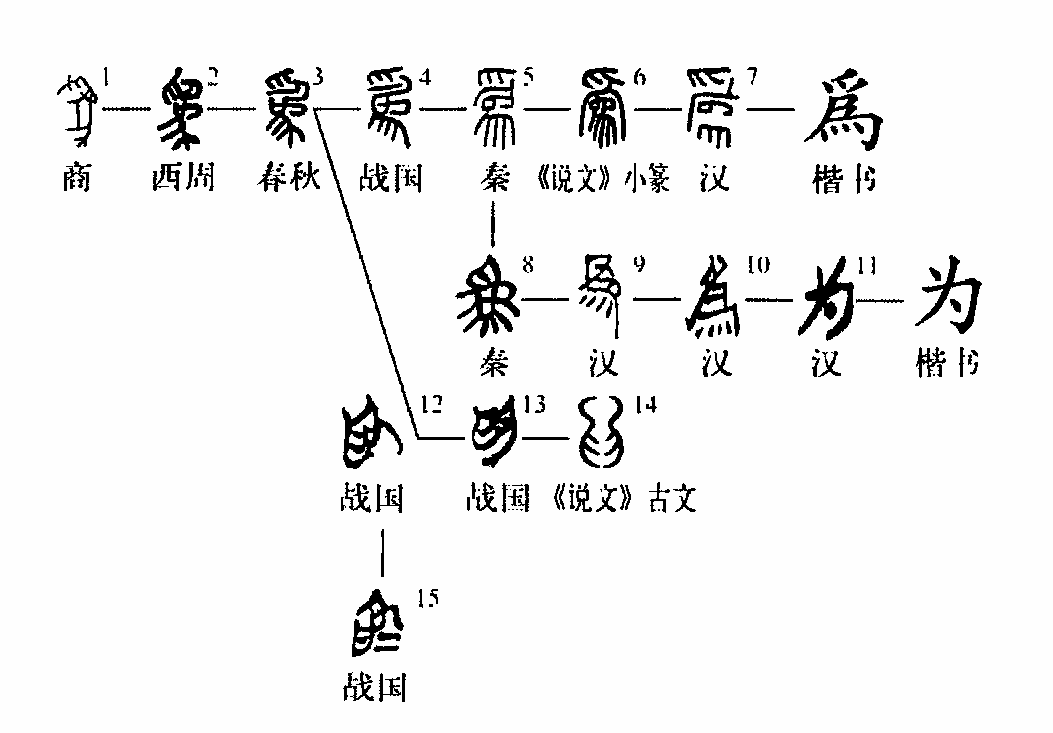 會(huì )意字。從爪象。甲骨文像一只手牽著(zhù)一頭象,會(huì )勞作意。從“爲”字的構形,表現出遠古時(shí)代中原地區氣候溫暖、人們馴服大象役其勞作的情況,同時(shí)也透露出漢字非常古老的信息。“爲”是個(gè)使用頻率極高的常用字,在使用過(guò)程中產(chǎn)生了很多變體、簡(jiǎn)體、訛體等等,到了小篆,已經(jīng)看不出大象的模樣了?!墩f(shuō)文》臆猜為“母猴”,肯定是錯了。小篆承襲的是春秋、戰國秦文字的寫(xiě)法,較之戰國時(shí)代的六國古文變化還算小的。六國“爲”字常常簡(jiǎn)化得只剩一只手和一顆不像象頭的象頭,更無(wú)從見(jiàn)其本義了。 “爲”字的《說(shuō)文》古文當是