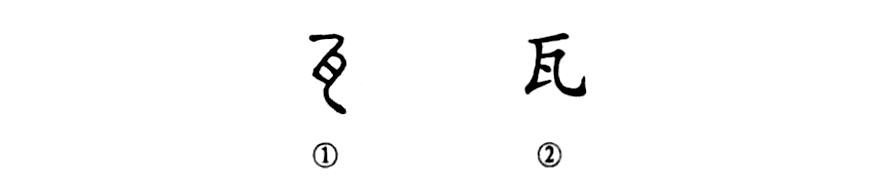 “大丈夫寧可玉碎,不能瓦全。”這個(gè)“瓦”字本為象形字。①是小篆的形體,像瓦器的形狀。②是楷書(shū)的形體。