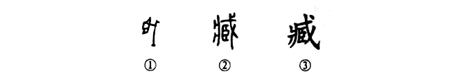 ,非“上”字,當是飾筆,后世多作一。進(jìn)入戰國時(shí)代,主要有三種結構的臧字并存:(一)從臣戕聲,臣下多有飾筆一,秦系文字巧妙地將爿、臣結合, “共用”一個(gè)豎筆,簡(jiǎn)寫(xiě)作