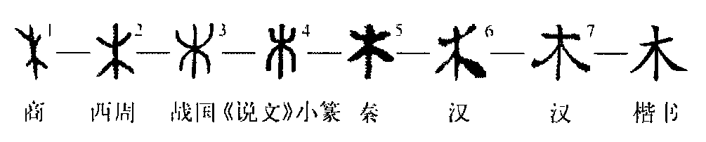 “木”字是個(gè)部首字。在漢字中,凡是從“木”的字,大都與樹(shù)木有關(guān),如“本”、“末”、“朱”、“束”、“析”、“果”等字。