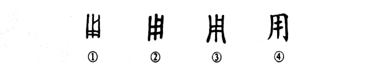 “男兒重意氣,何用錢(qián)刀為?”這個(gè)“用”字本為象形字。甲骨文①就像一只木桶的樣子,實(shí)際上“用”字也就是“桶”字的初文。②是金文的形體,與甲骨文基本上一致;③為小篆的寫(xiě)法、仍由甲、金文演變而來(lái)。④為楷書(shū)的寫(xiě)法。