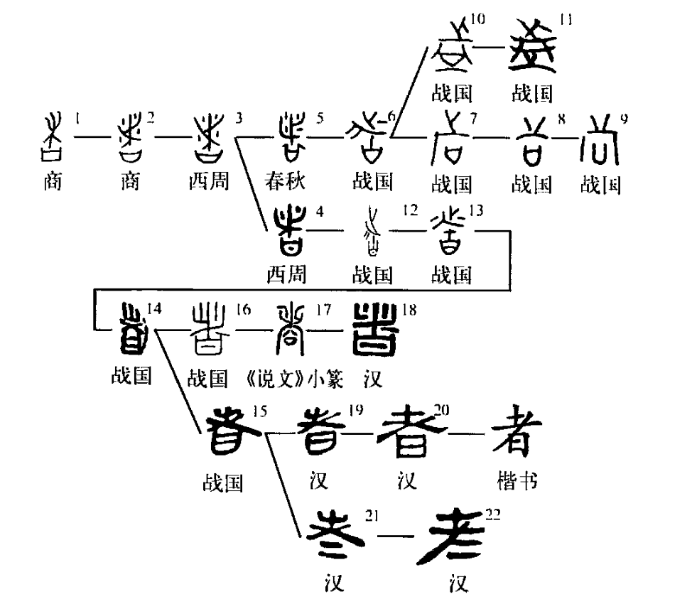 ,并未取得主流地位。舊字形者字下部構件作白(zì),全字九筆;今字形作日,全字八筆。假借作代詞用,出現在時(shí)間詞中,起復指作用,紀時(shí)。《殷虛書(shū)契后編》上29.10:“丁巳卜,今者方(部族方國)其大出? ”中山王