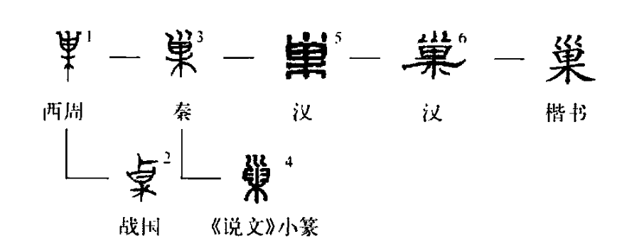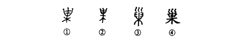 (《甲文編》444頁(yè),“漅”字所從),像樹(shù)上有鳥(niǎo)巢。巢形之演變序列為: