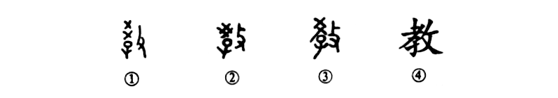 ,此體延續到戰國,后不傳。戰國時(shí)主流體教經(jīng)常省略構件攴作??(見(jiàn)郭店楚簡(jiǎn)《老子》甲本)。隸變時(shí)構件爻或作