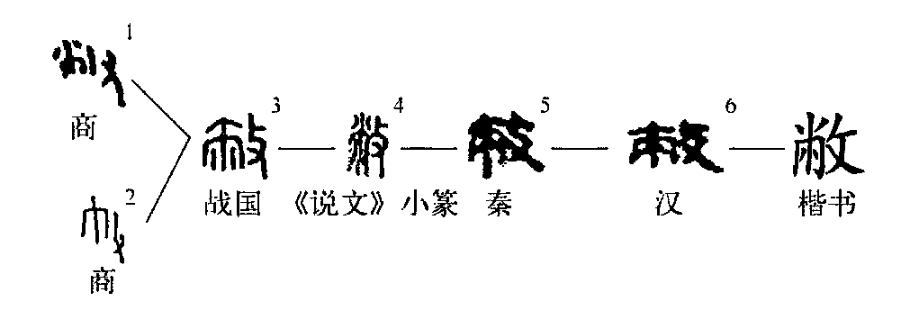 會(huì )意兼形聲字。從?,從攴,?亦聲。甲骨文從攴,從巾。右邊是手持木棍抽打巾,左邊的“巾”是一塊布,布上的點(diǎn)表示破碎的布屑。戰國文字承襲甲骨文。右邊“