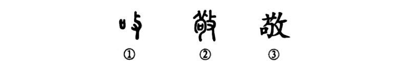 這是“恭敬不如從命”的“敬”字,本為會(huì )意字。①是金文的形體,其左為“口”,其右為“攴(手執鞭形)”,表示牧人吆喝羊群,所以有“戒”義。②是小篆的形體,變?yōu)閺?ldquo;茍”從“攴”,成為會(huì )意兼形聲的字。③是楷書(shū)的形體。