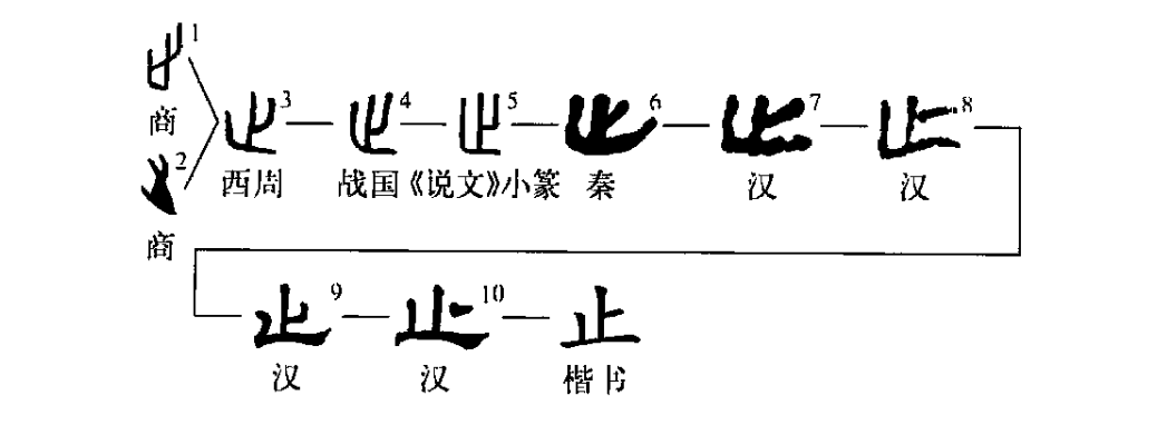 ?“止”字是個(gè)部首字。在漢字中凡由“止”字所組成的字大都與“腳”有關(guān),如“出”、“此”、“步”、“陟(zhì至)”等。