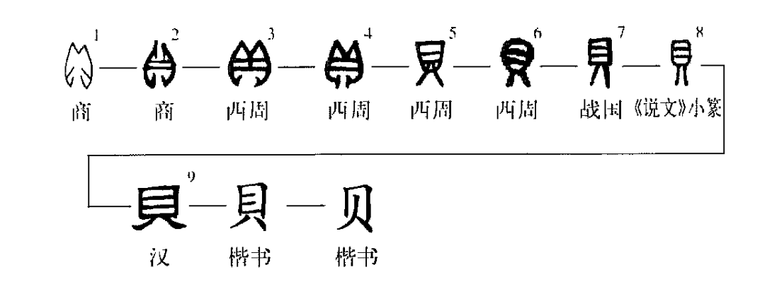 ,為后世文字所本。上古時(shí),貝殼曾被用作貨幣。《說(shuō)文》:“貝,海介蟲(chóng)也。……象形。古者貨貝而寶龜,周而有泉,至秦廢貝而行錢(qián)。”《書(shū)·盤(pán)庚中》:“茲予有亂政同位,具乃貝玉。”孔穎達疏:“貝者,水蟲(chóng)。古人取其甲以為貨,如今之用錢(qián)然。”遽伯瞏尊:“遽白(伯)瞏作寶