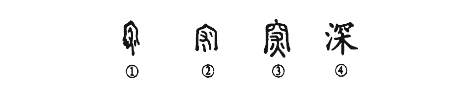 “桃花潭水深千尺,不及汪倫送我情。”這個(gè)“深”字原為會(huì )意字,與“探”字出于同一個(gè)字源“罙”。甲骨文①就像一只大手在一個(gè)洞穴中探測深淺。②是金文形體,同于甲骨文。③是小篆的形體。④是楷書(shū)的寫(xiě)法,其左增加了“水”旁,表示水深。