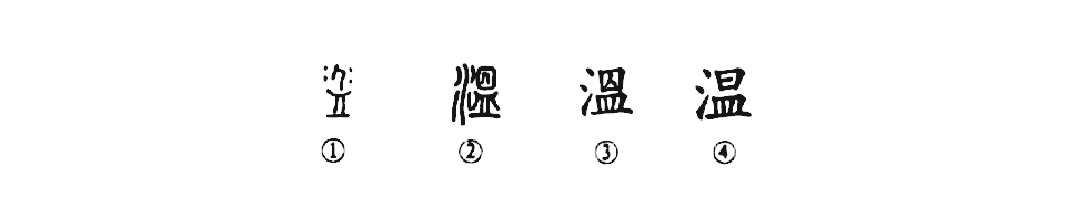 “漸覺(jué)一家看冷落,地爐生火自溫存。”這個(gè)“溫”字本為會(huì )意字。在甲骨文中,“溫”、“浴”很可能就是一個(gè)字。甲骨文①“人”旁的四個(gè)小點(diǎn)是水氣,像人在容器中洗身的樣子,所以有“溫”義。②是小篆的形體,左邊是“水”,右邊的形狀仍與洗浴有關(guān)。③是楷書(shū)異體字的寫(xiě)法。④為楷書(shū)通行體,將“囚”改為“曰”,書(shū)寫(xiě)方便。